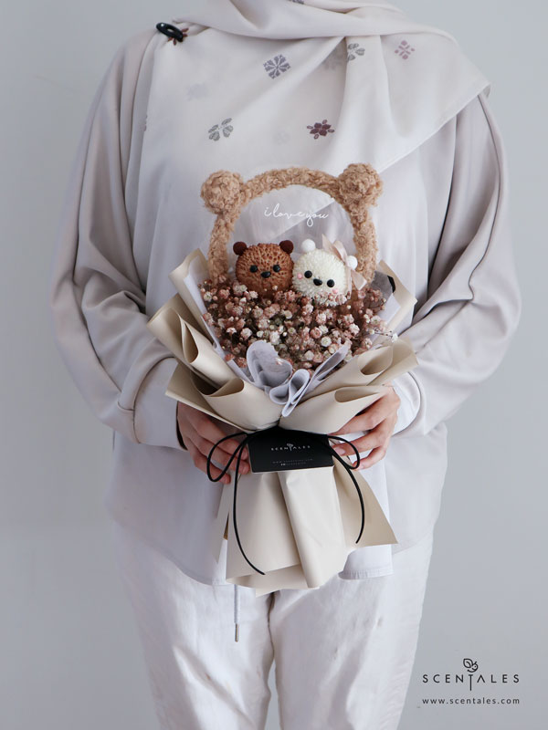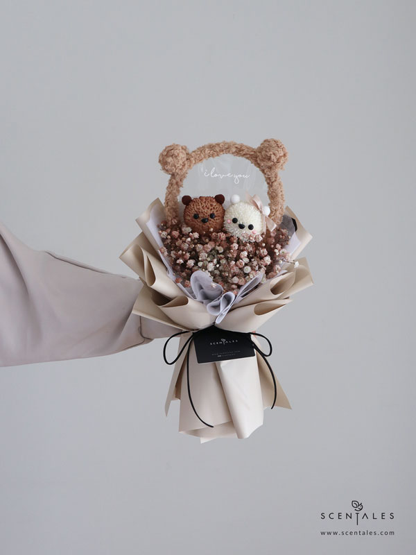 (Valentine’s Day Special) Mocha & Latte Bear Fresh Flower Bouquet